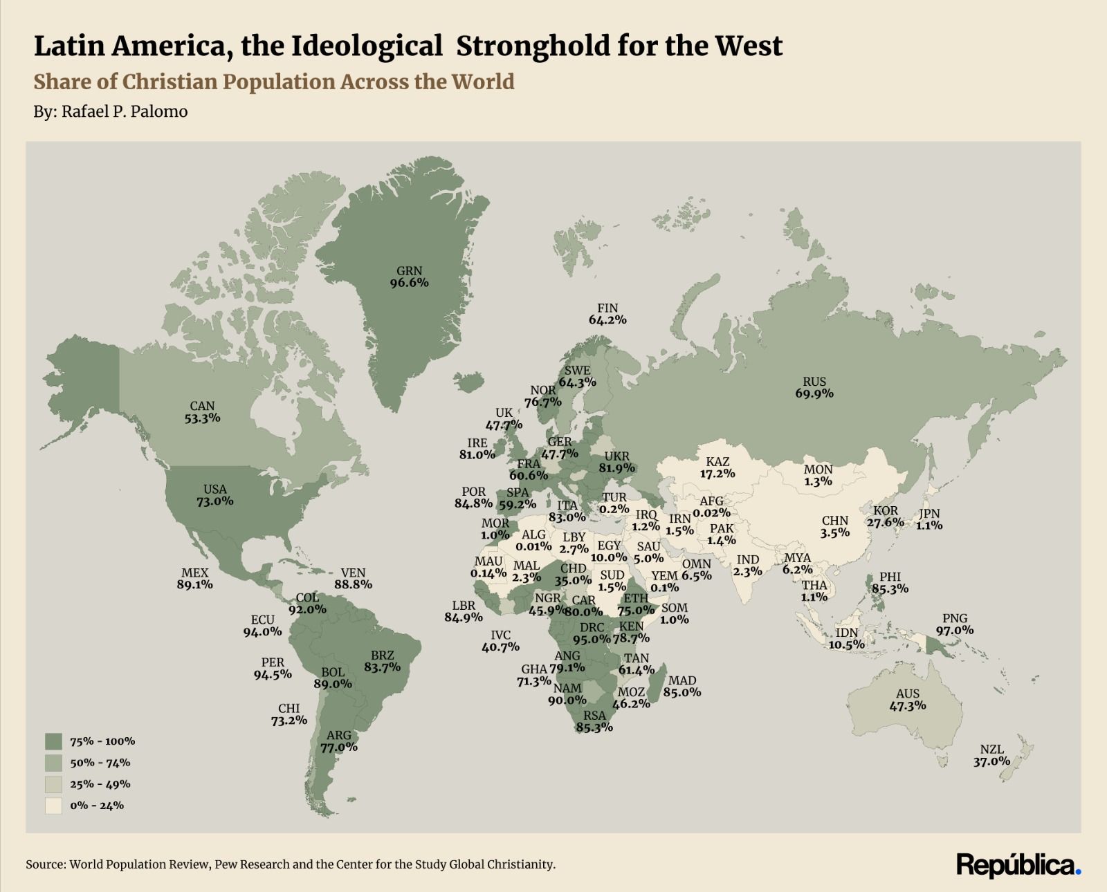 In perspective. The map reveals something that often gets overlooked. While Europe continues its steady move toward secularization, Latin America remains overwhelmingly Christian. That’s not just a religious detail. Christianity—particularly Catholicism—helped shape the foundations of Western institutions: human dignity, limits on political power, the moral basis of law.